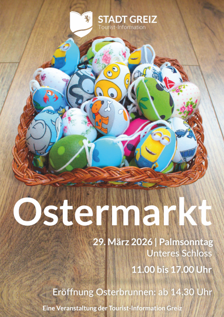 Ein besonderer Höhepunkt ist der Ostermarkt im Unteren Schloss Greiz, der am Sonntag, 29. März 2026, von 11:00 bis 17:00 Uhr im historischen Ambiente des Schlosses stattfindet. Bereits zum siebten Mal öffnen sich hier die Tore für Besucherinnen und Besucher. Zahlreiche Händler und regionale Aussteller präsentieren innen und außen hochwertige, handgefertigte Waren – von dekorativen Ostereiern und Frühlingsgestecken über Textilien, Wolle und Kerzen bis hin zu Spirituosen und kulinarischen Genüssen. Zum umfangreichen Sortiment zählen unter anderem Schals und Tücher, Obstbrände, Dekoartikel, Keramik, Räucherstäbchen, Tischsets, Selbstgenähtes, leuchtendes Glas sowie vogtländische Souvenirs von Rock A Fox.Design. Hier hat man sogar die Möglichkeit Artikel vor Ort je nach Kundenwunsch drucken zu lassen.