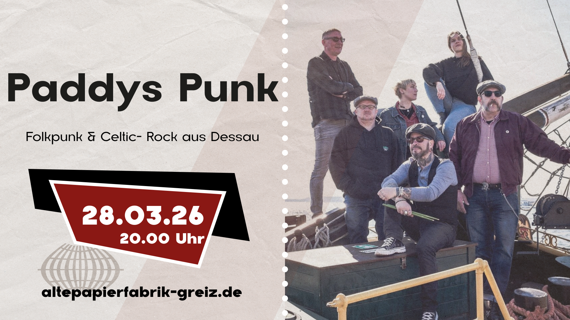 Mit ihrem Album „With Full Horse“ und jeder Menge Live-Erfahrung haben sich Paddy’s Punk längst einen Namen in der Szene erspielt. Keine geschniegelt-polierte Show, sondern handgemachter Sound, Spielfreude und ein direkter Draht zum Publikum.