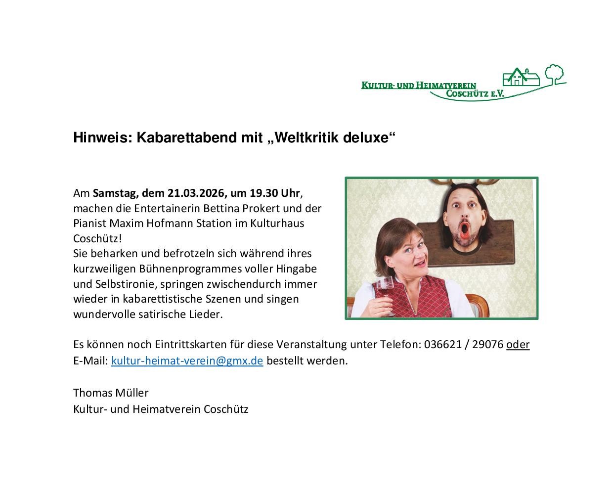 Kabarettabend in Elsterberg Ortsteil Coschütz