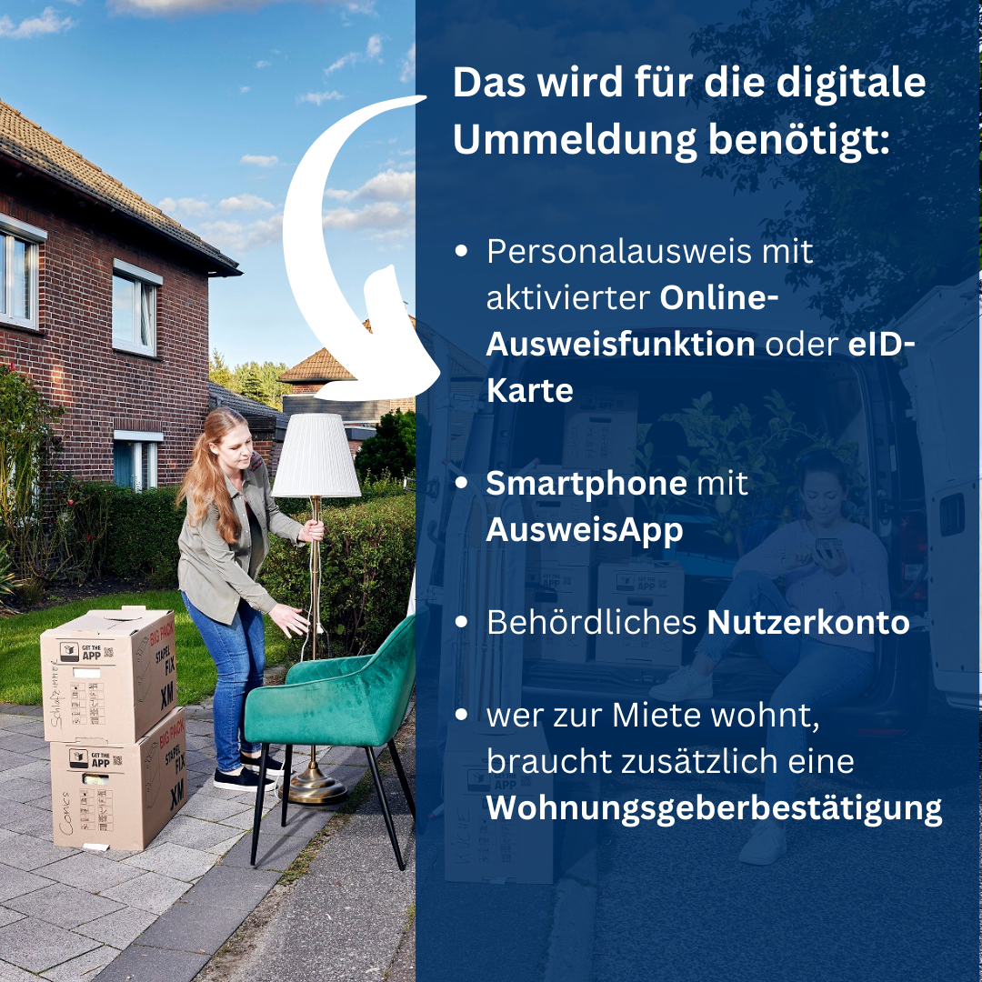Alles, was Sie dafür benötigen: Einen Personalausweis mit aktivierter online-Ausweis-Funktion (eID-Funktion), die AusweisApp und ein behördliches Nutzerkonto, wie die BundID. Wer seine eID-Funktion noch nicht aktiviert hat, nutzt am besten die Gelegenheit, dies nachzuholen. So können künftig weitere Verwaltungsgänge, die bereits online angeboten werden, erspart werden.