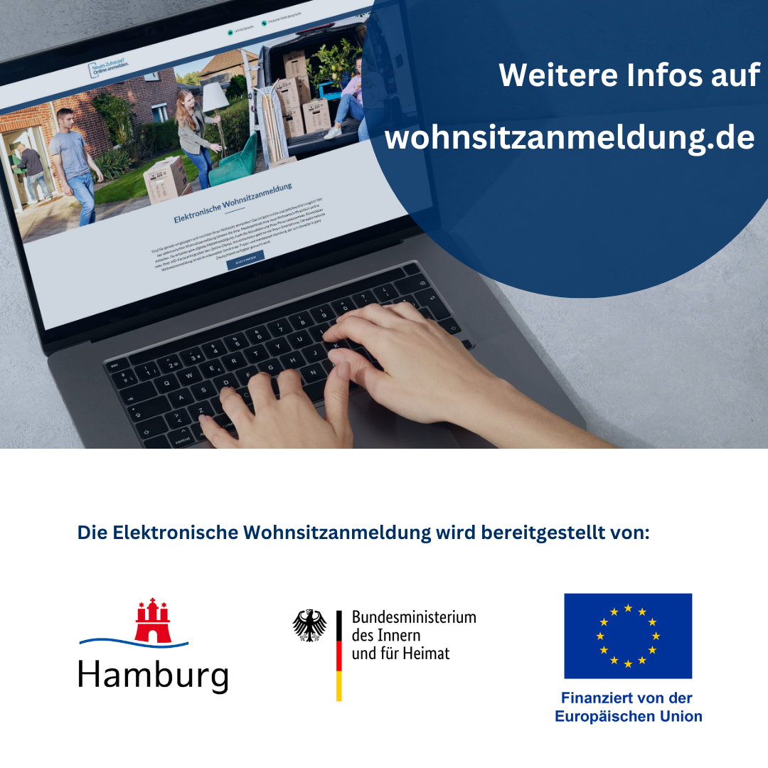 Zum Hintergrund: Die Elektronische Wohnsitzanmeldung wurde nach dem Einer-für-Alle-Prinzip von der Stadt Hamburg entwickelt und Verwaltungen in ganz Deutschland zur Mitnutzung zur Verfügung gestellt. Er wird laufend erweitert und für immer mehr Personengruppen nutzbar gemacht. Alle Informationen zum Online-Dienst finden Sie auf: www.wohnsitzanmeldung.gov.de